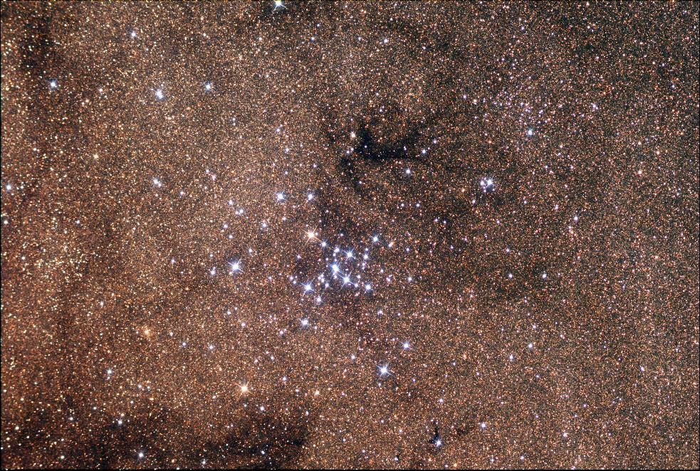 Astronomický snímek dne http://www.astro.cz/apod/ap050406.html | M7 je jedna z nejvýznamnějších otevřených hvězdokup na obloze. Hvězdokupě dominují jasné modré hvězdy a na tmavé obloze ji lze spatřit i pouhým okem v ocasu souhvězdí Štíra (Scorpius). M7 celkem obsahuje asi 100 hvězd, je stará asi 200 miliónů let, napříč má 25 světelných let a leží ve vzdálenosti asi 1000 světelných let. Tento barevný snímek byl pořízen nedávno z národní observatoře Kitt Peak v Arizoně v USA jakou součást pokročilého pozorovacího programu. Hvězdokupa M7 je známá už od starověku, v roce 130 po Kristu ji zaznamenal Ptolemaios. Ve spodní části snímku je také vidět tmavé prachové mračno a směrem ke galaktickému centru doslova milióny nesouvisejících hvězd. |